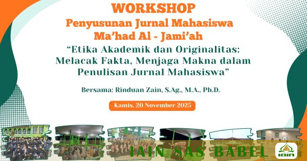 Kegiatan yang dijadwalkan berlangsung pada Kamis, 20 November 2025, di lingkungan IAIN SAS Bangka Belitung ini mengangkat tema “Etika Akademik dan Originalitas: Melacak Fakta dan Menjaga Makna dalam Penulisan Jurnal Mahasiswa.” Melalui tema tersebut, panitia menargetkan peningkatan kualitas penulisan agar mahasantri mampu menghasilkan karya ilmiah yang faktual, jernih, dan berkarakter akademik kuat.